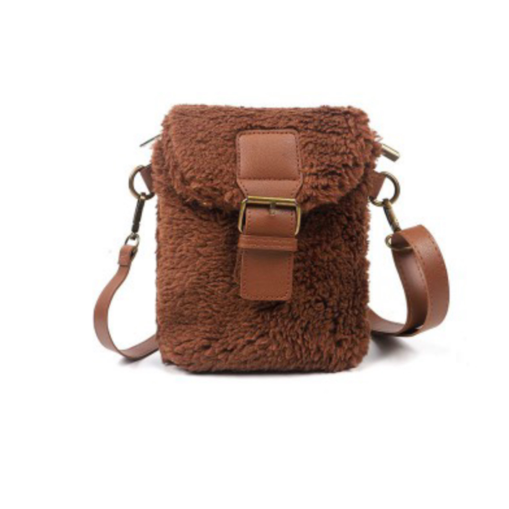 Tasje van teddy stof en gesp